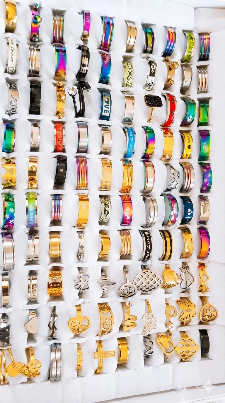 100pcs/box Mixed Unisex Women and Men's Finger Set Wedding Engagement Jewelry Bulk Lot Stainless Steel Rings